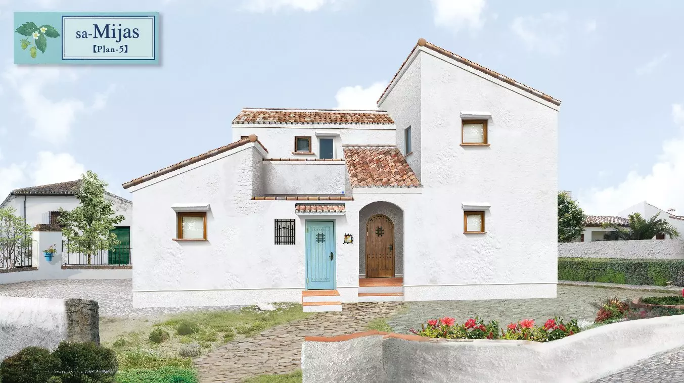 スペイン漆喰を塗り重ねたまっ白な壁に、赤茶や黄土色の素焼瓦。古びたアイアン飾りの付いた、緑でいっぱいのパティオ。 永きに渡り手入れをされ、受け継がれてきたミハスの街並みは、月日を重ねるごとにその美しさを増しています。 【sa-Mijas】は、古き良き物に価値観を見い出す家族の物語を紡ぐ家。ミハスの人々が受け継いできた 「飽きのこない使い込まれた物への愛着と価値観」を大切にしながら、日本の皆様にお届けする家【sa-Mijas】を、ご堪能ください。